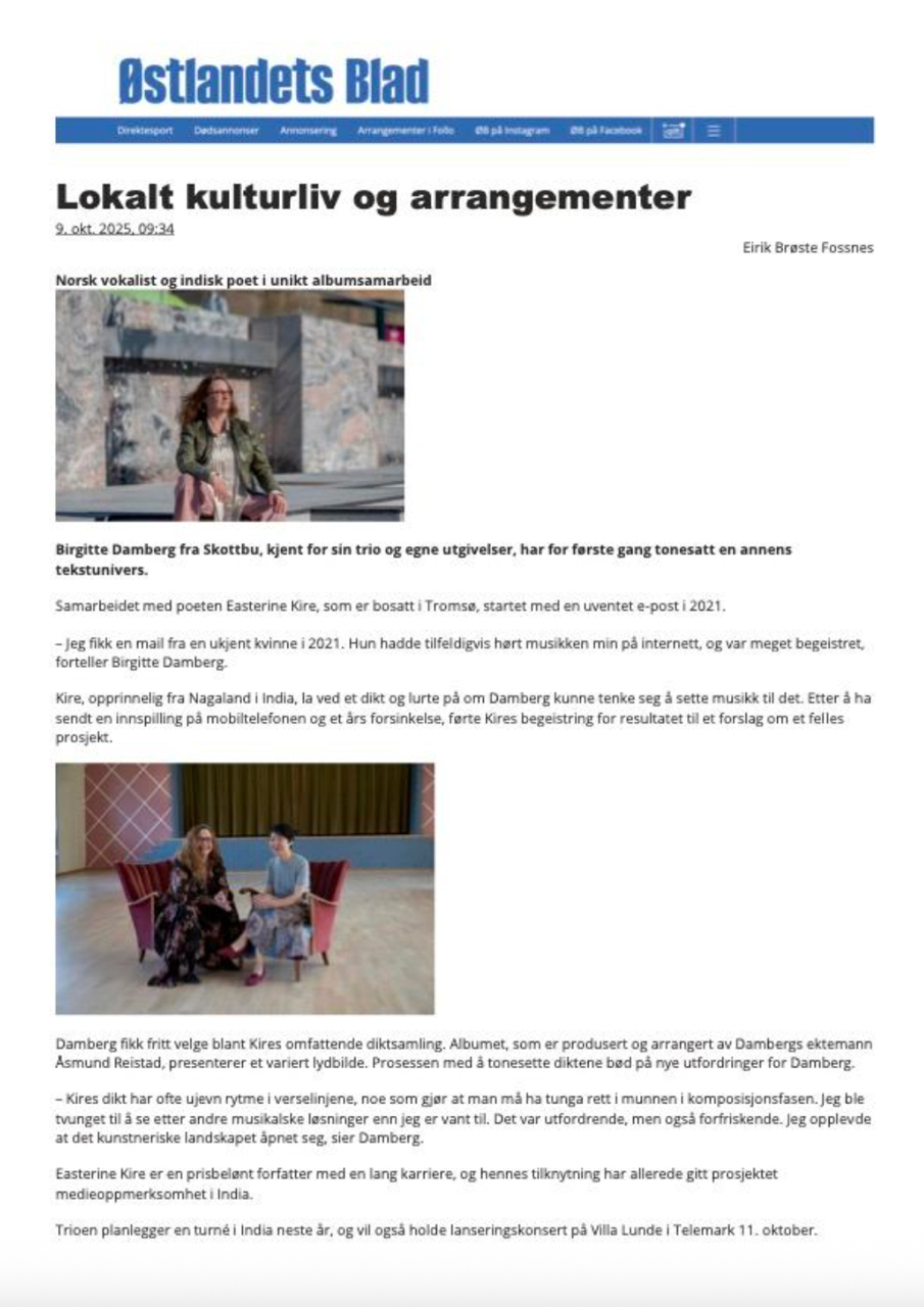 Omtale i Østlandets blad i forbindelse med at Vintervals ble nominert til pris i filmfestival i Kroatia.